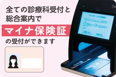 当院ではマイナンバーカードの顔認証リーダーを総合案内と全ての診療科受付に設置しています。
