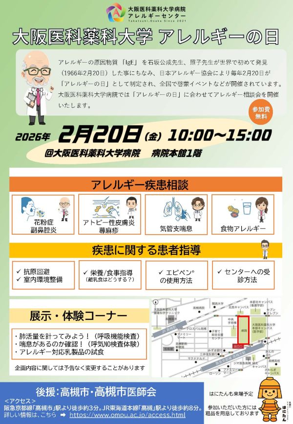 - 高槻市市民医学講座 「アレルギーの基本知識とその対策:私たちの健康を守るために」