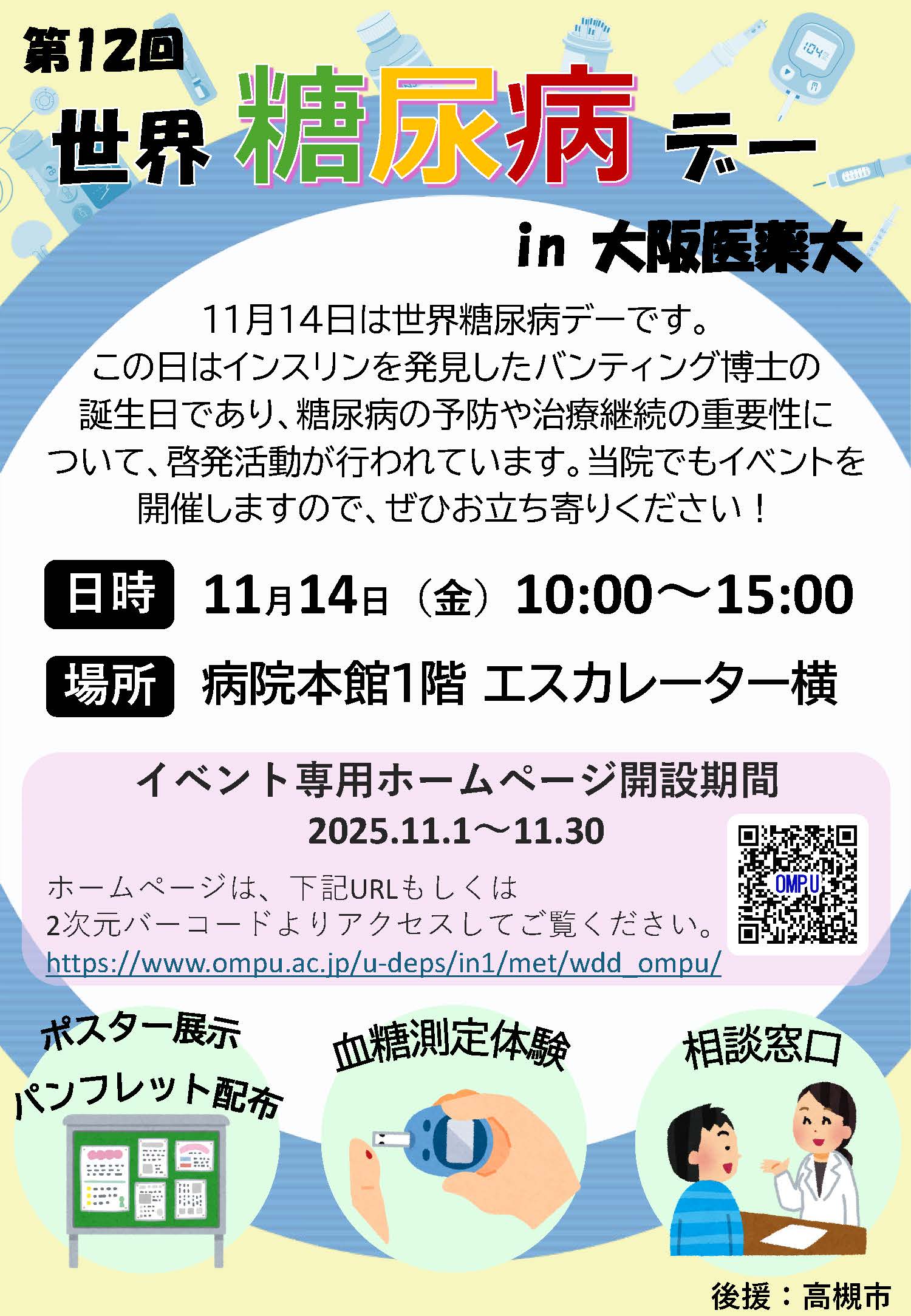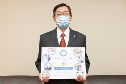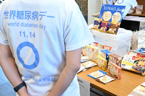 11月14日(金)10:00〜15:00、病院本館1階でポスターやパンフレットの配布、血糖測定体験や相談コーナー、適正糖質食品展示、糖質体験会などのイベントを開催します。