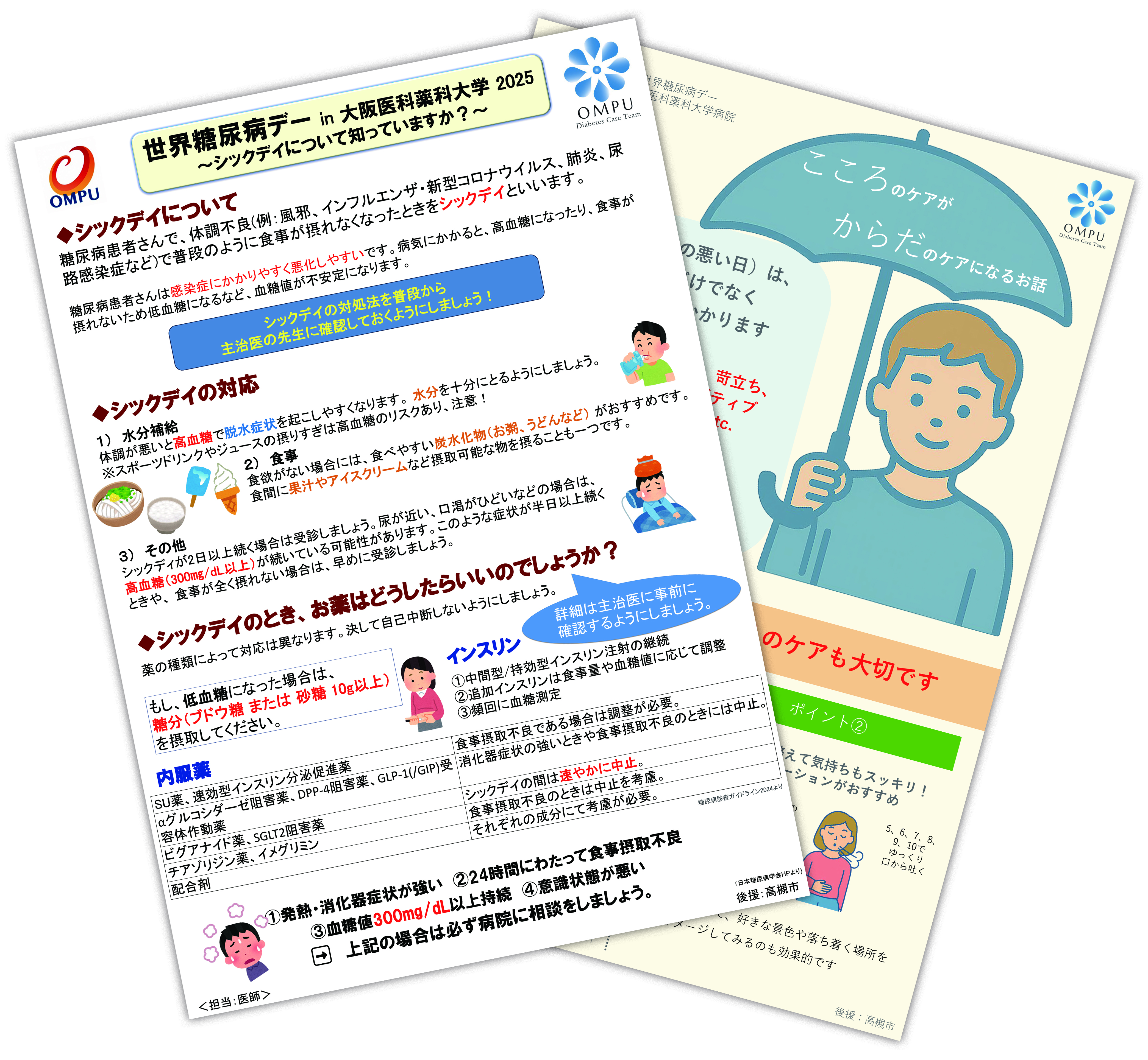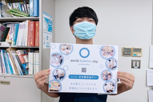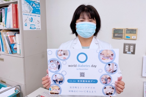 糖尿病ケアチームでは、毎年ホームページで日常からすぐに取り入れられること、みなさまにぜひ知ってほしいことなどを掲載しています。本年は、「まわりの人とできる糖尿病ケア」をテーマに糖尿病のある人とのかかわり方などを医療スタッフで作成したポスターを掲載しております。糖尿病に関する誤った知識や考えを持っていませんか?この機会に見直しお役立てください。