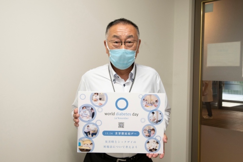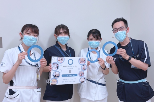 11月14日、スタッフは『世界糖尿病デー』のテーマカラーであるブルーのマスクを着用します。