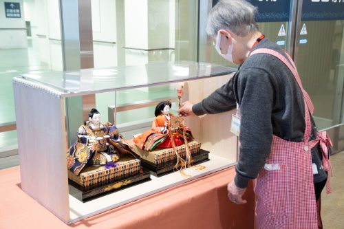 病院ボランティアさんにより、病院本館1階に雛人形が設置されました。