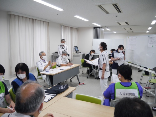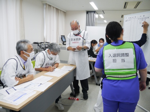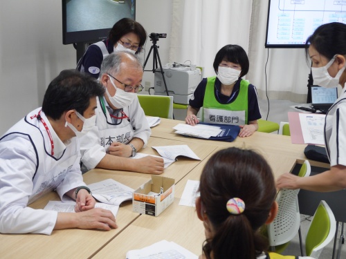 災害発生時の災害対策本運営の実効性を確認・改善を目的に10月4日、勝間田病院長他、計27名による大規模地震を想定したシミュレーション訓練を実施しました。