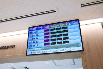 診察の順番になれば、モニターに受付票の番号が表示されますので、医師や看護師の指示に従って診察を受けてください。※モニターがない受付では順番に「お名前」をお呼びします。